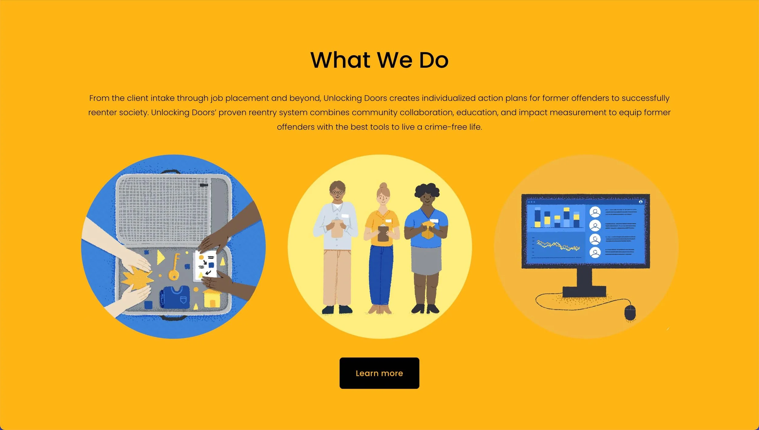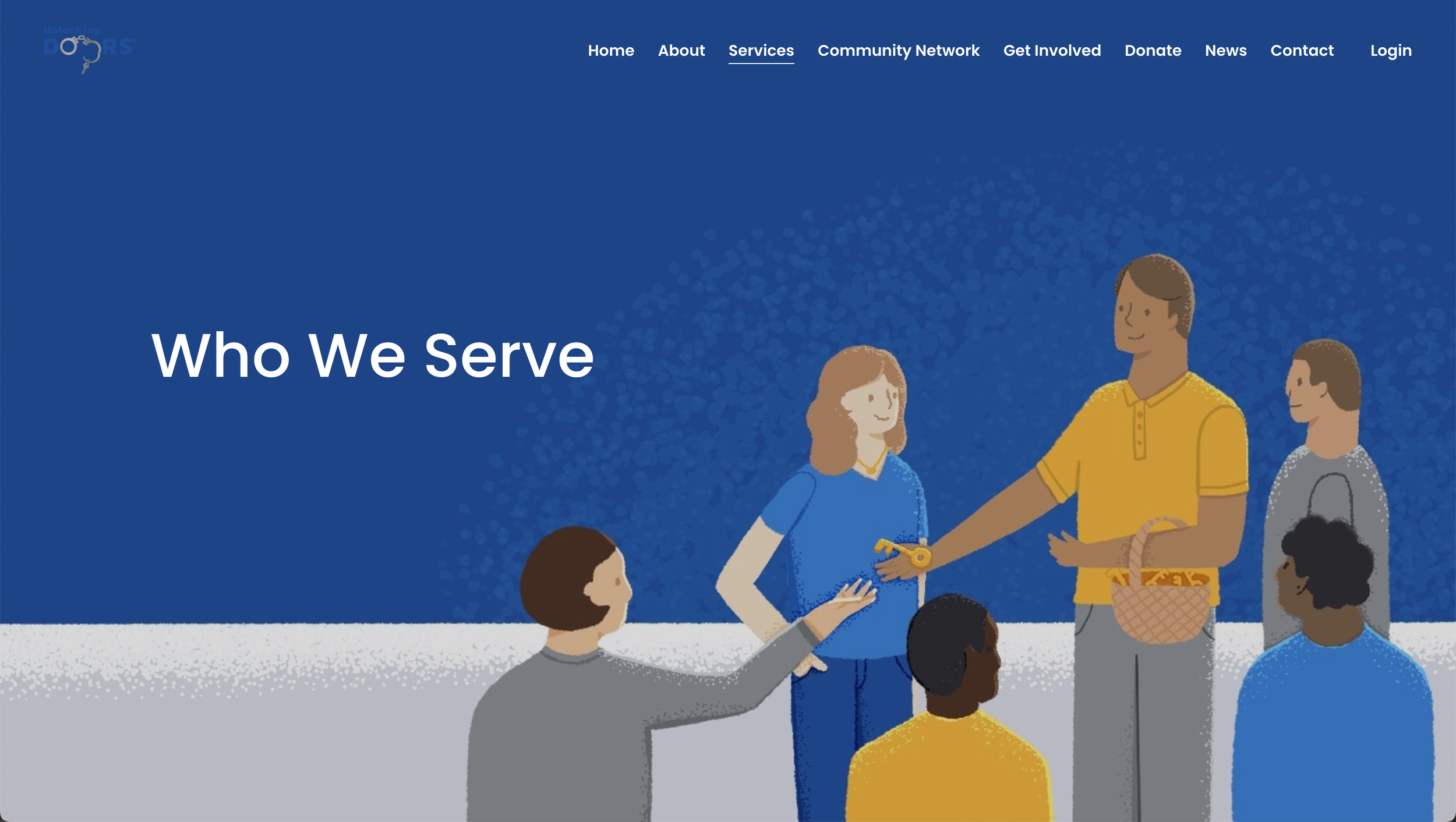 Unlocking Doors helps recently released incarcerated individuals find the help they need to transition back in to society. I made these illustrations for their website to help highlight the resources that are available for the inmates.